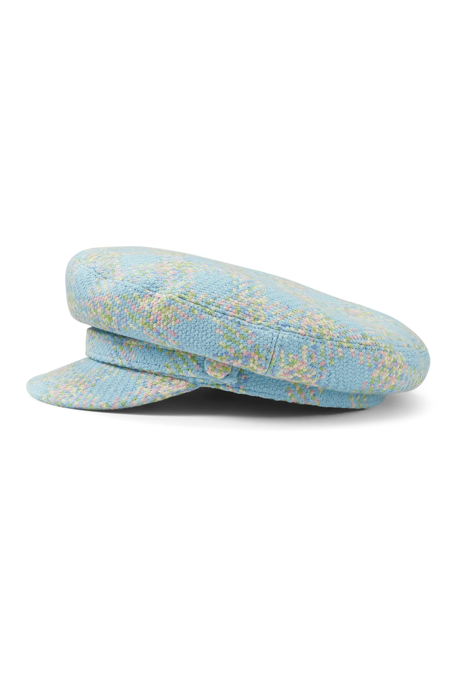 The Ahoy Skipper Cap has been brought ashore with a delightful spring and summer twist. The soft light blue colour reimagines this nautical classic into a chic, fashionable and luxurious accessory for summer in the city.