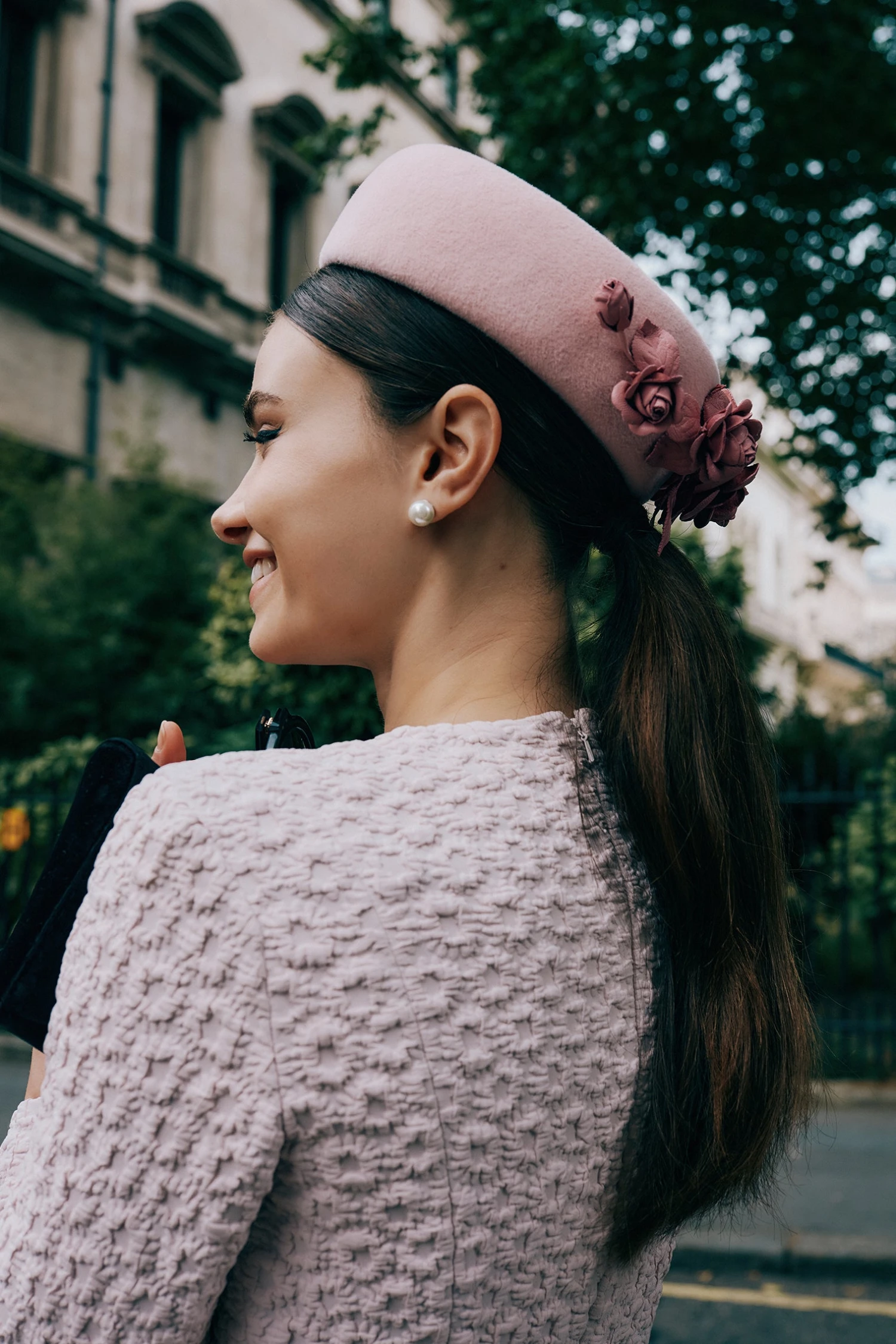 Paired with an elegant dress, our felt pillbox creates the perfect chic wedding guest outfit.