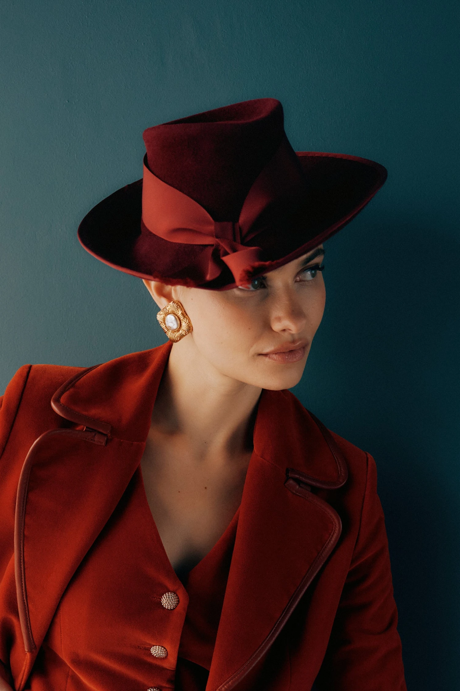 The Eaton trilby is a beautiful 1940s inspired hat, featuring a flattering up-turned angled brim.