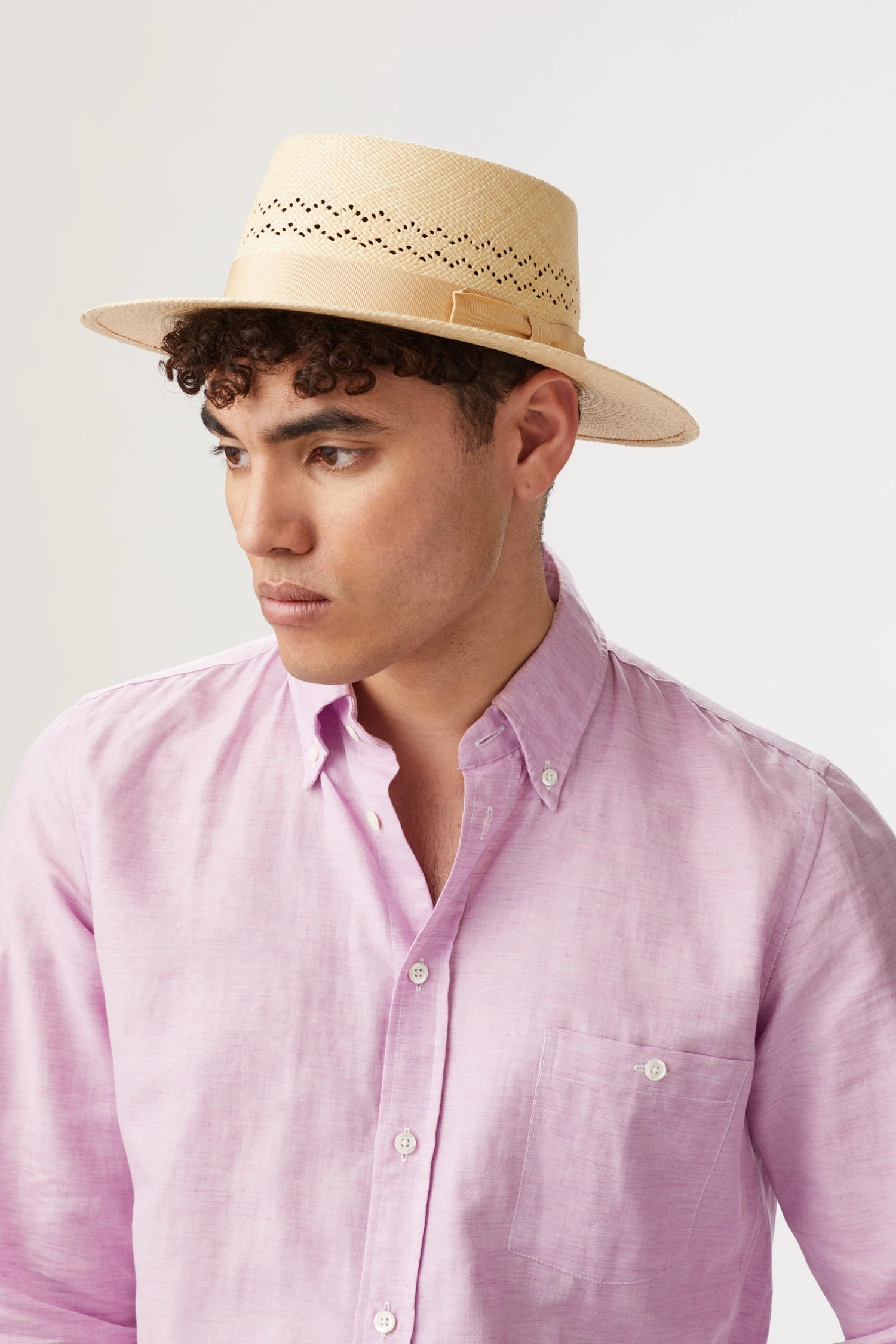 A spring and summer sartorial staple, this take on the classic Panama offers a pork-pie hat style that retains its natural colouring and is truly a timeless piece. Lightweight, this hat keeps you cool even in warmer climates.