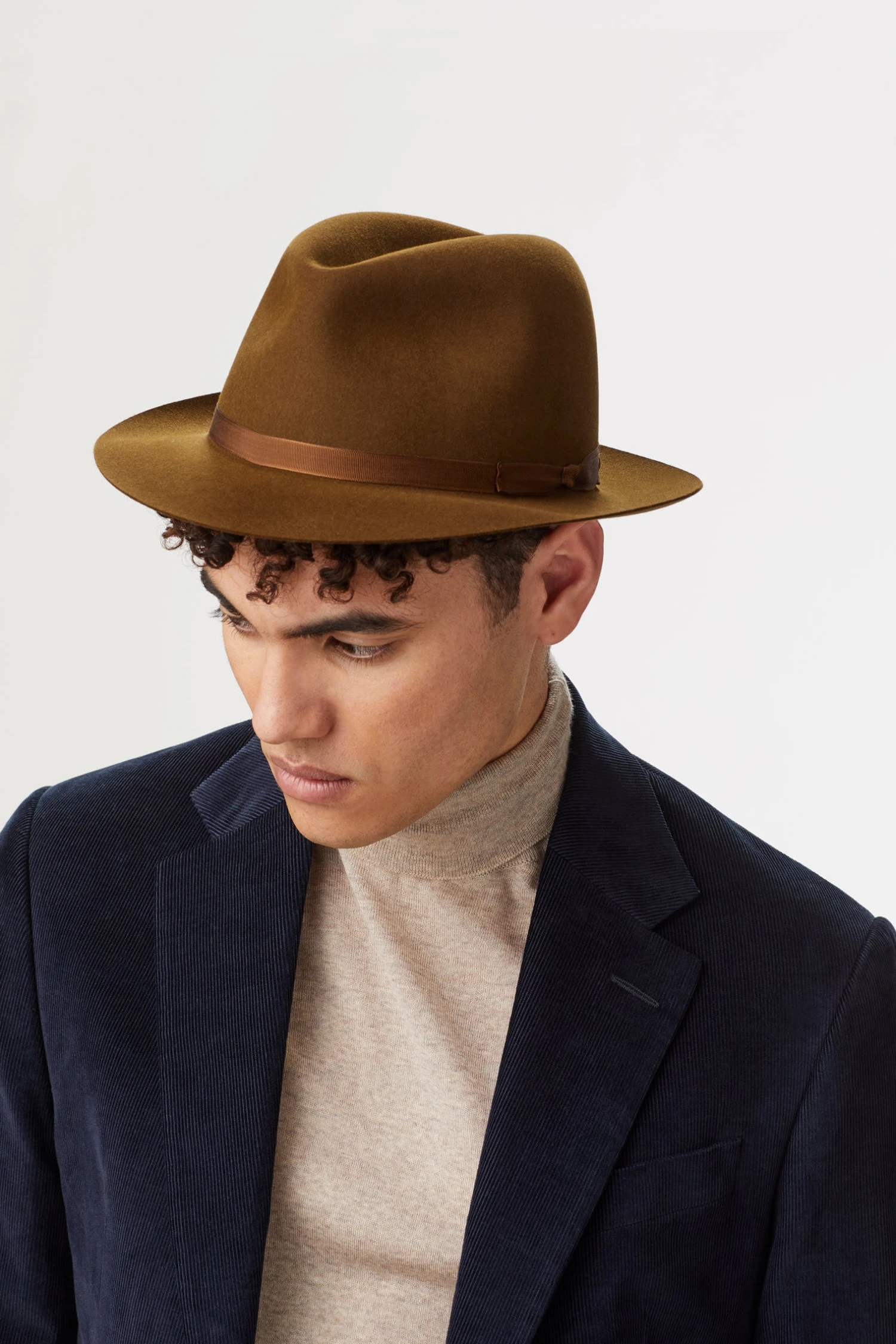 Our Voyager felt trilby has been cleverly designed to be the most dapper of hats when worn, but it can also be easily rolled up and stored for travel.